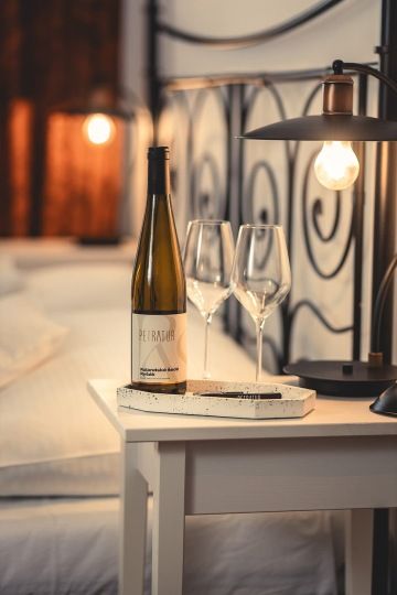 Stejně jako naše Rulandské šedé Ryšák, které v sobě spojuje svěžest bílého vína s jemným narůžovělým nádechem, nabízí tento pokoj čistotu, světlost a nenucenou eleganci s náznakem hravosti. Svěží tóny v interiéru a jemné detaily vytváří prostředí, ve kterém se budete cítit lehce a příjemně. Ideální místo pro všechny, kdo hledají klidné a pohodlné zázemí s nádechem osobitosti typické pro vinařství PETRATUR.